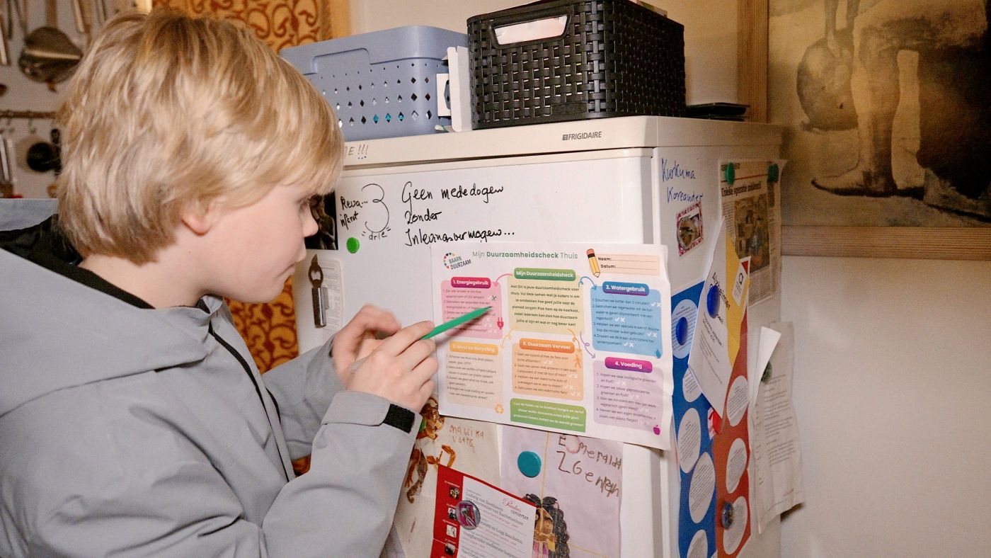 Hoe bereik je gezinnen bij verduurzaming, ook achter de voordeur? In Baarn ontstaat een vernieuwende aanpak waarin kinderen een centrale rol spelen. Met de zogeheten koelkastposter onderzoeken leerlingen samen met hun ouders hoe het thuis gaat met energie en duurzaamheid. Dat vormt het startpunt voor gesprekken, kleine acties en soms grotere stappen.